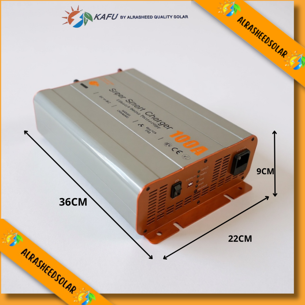 شاحن بطاريات يعمل على 220 فولت بقدرة 100 امبير مخصص لبطاريات الليثيوم كفو المطورة او البطاريات الجافه والماء